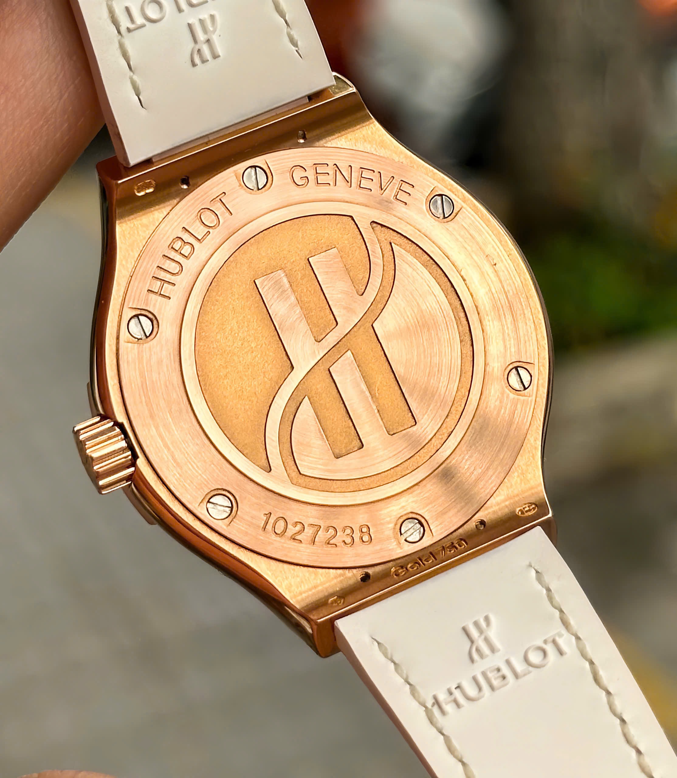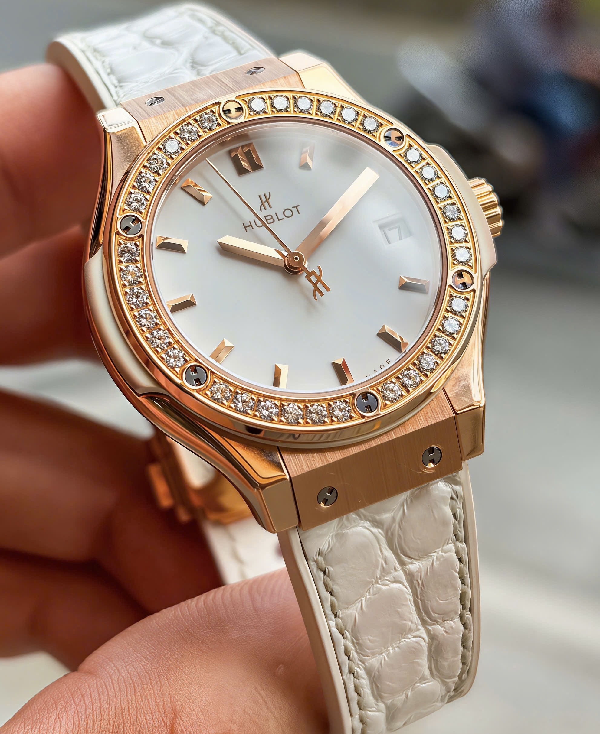 Hublot Classic Fusion MOP White Diamonds Nữ, Ref: 581.OE.2080.LR.1204, Vàng hồng đúc 18k nguyên khối, Niềng Kim Cương Thiên Nhiên Zin hãng, Size 33mm, Like new fullbox, Giao lưu 286 triệu (Retail:~900 triệu) ah