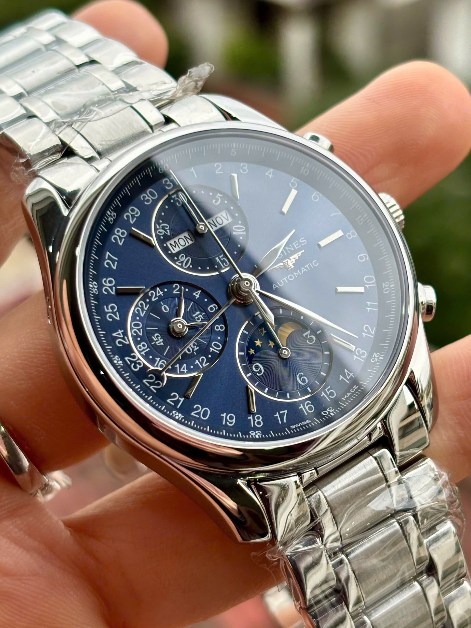 Đặt mua Longines Master Collection Moonphase Chronograph Blue Columwell, l2.673.4.92.6, Size 40mm, Like new fullbox date cao