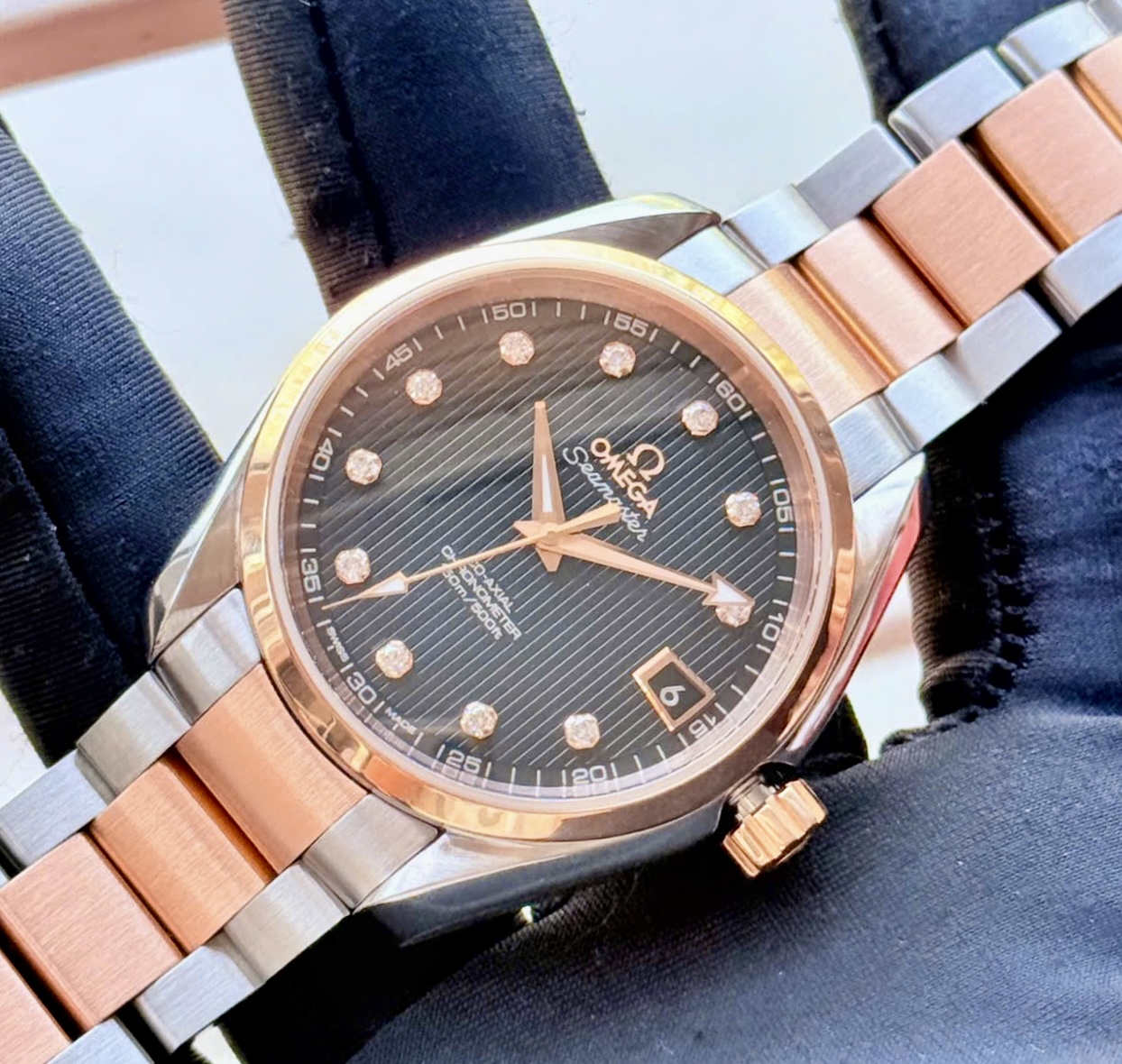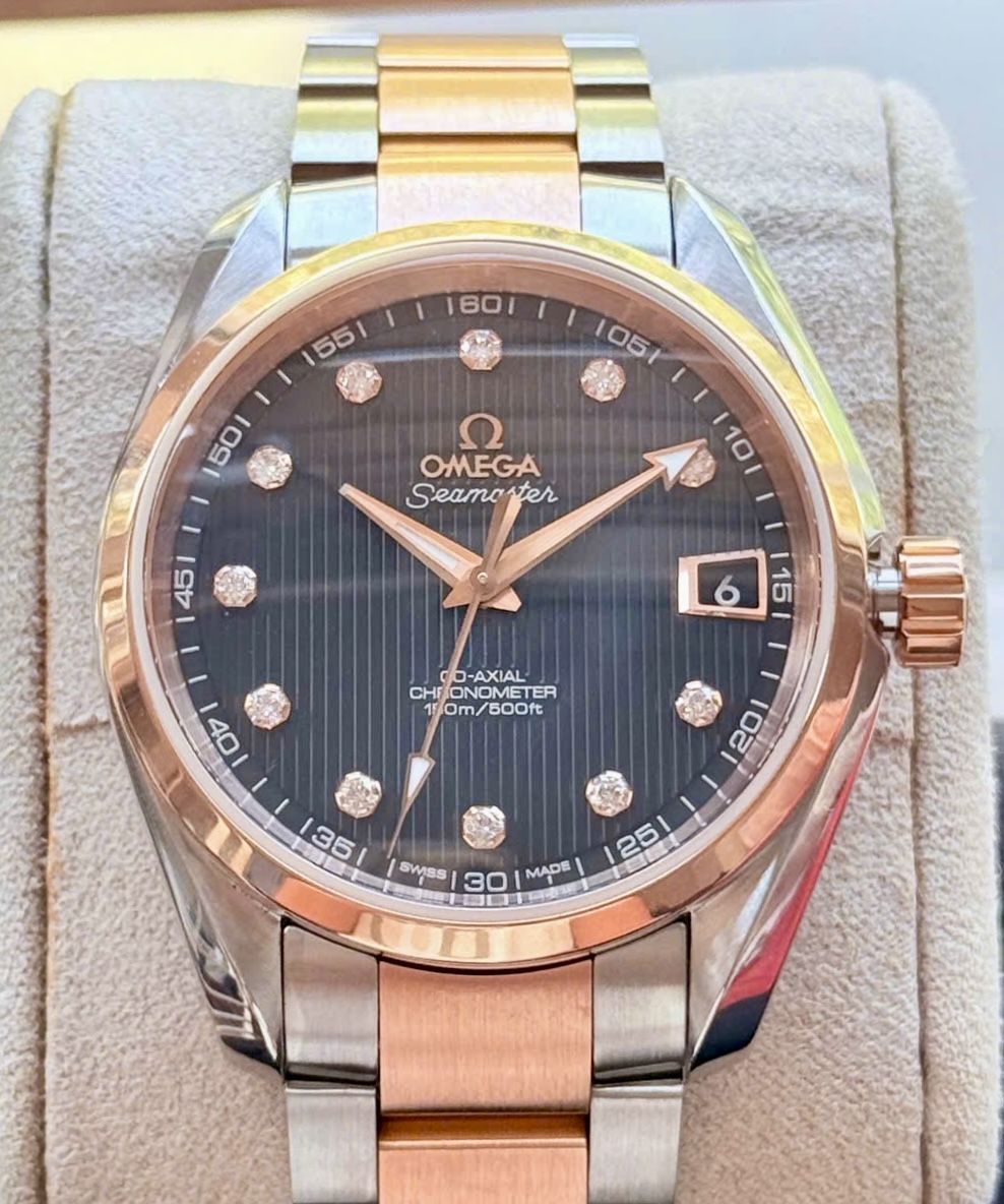 Đặt mua OMEGA Aqua Terra 8500 Big Diamonds, Ref: 231.20.39.21.51.002, Demi Vàng hồng 18k, Size 38.5mm, Like new fullbox