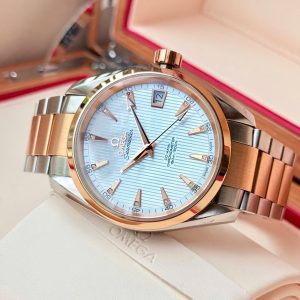 Đặt mua OMEGA Aqua Terra 8500 MOP (khảm trai) Diamonds Index, Ref: 231.20.39.21.55.001, Demi Vàng hồng 18k, Size 39mm, Like new fullbox