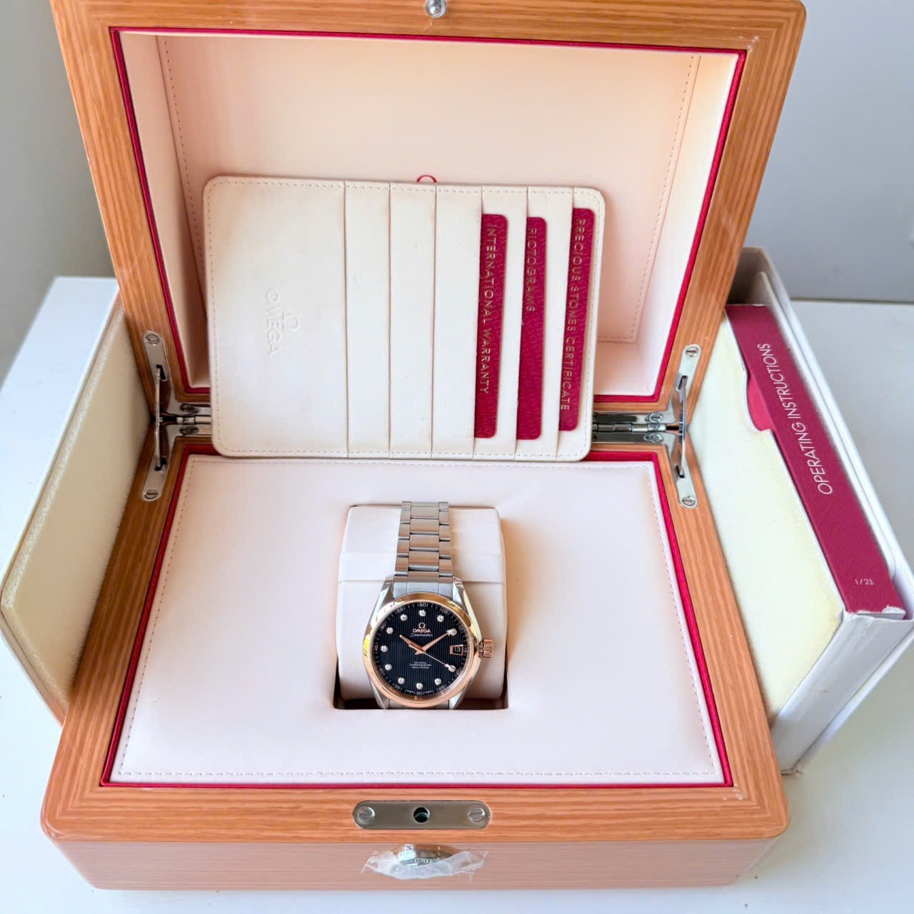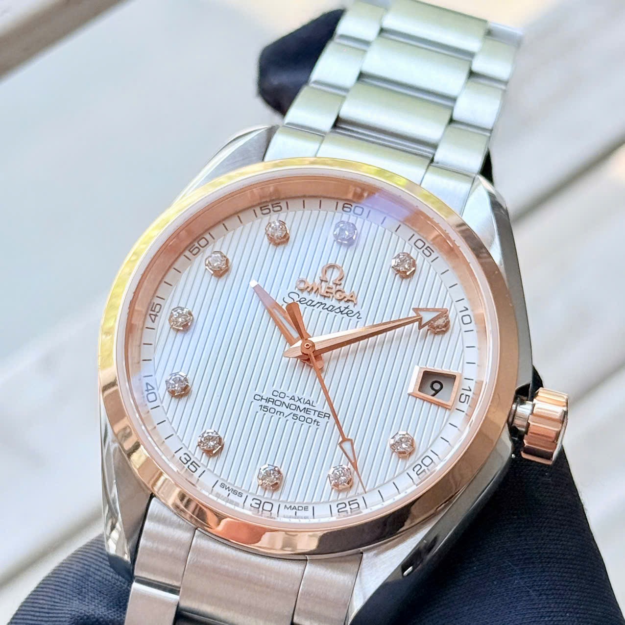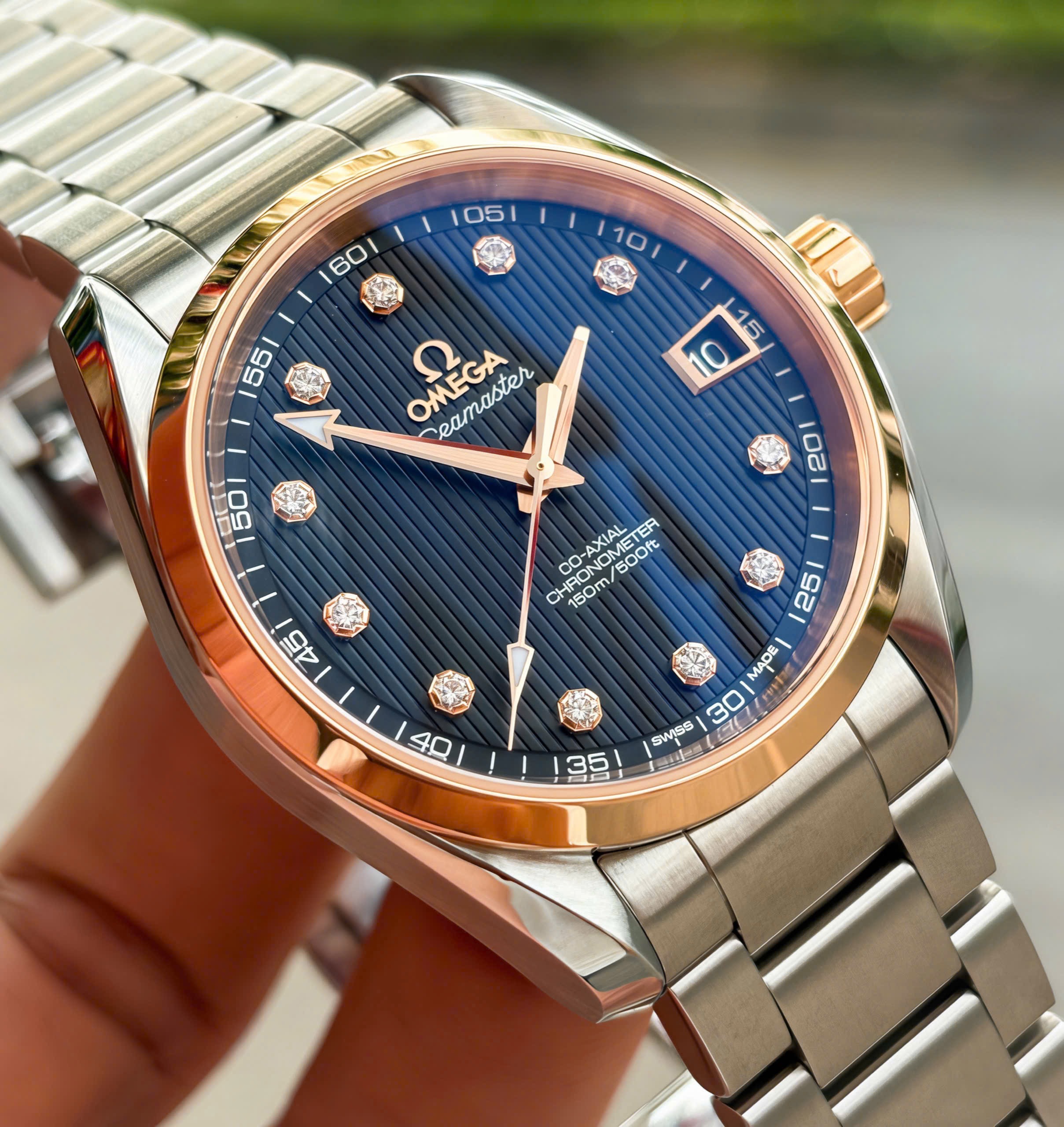 OMEGA Seamaster Aqua Terra 8500 Big Diamonds, Ref: 231.20.39.21.52.003, Demi Niềng Vàng hồng đúc 18k, Size 39mm, Like new fullbox, Giao lưu 98 triệu ah