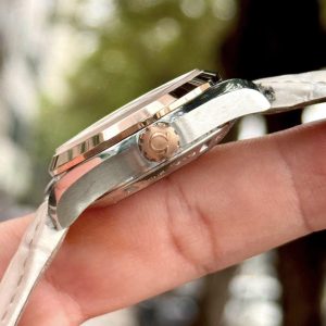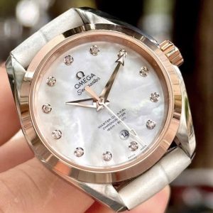 Đặt mua OMEGA Seamaster Aqua Terra 8520 Nữ_ MOP (khảm trai) trắng Diamonds, Demi Niềng Vàng hồng đúc 18k, Size 34mm, Like new fullbox