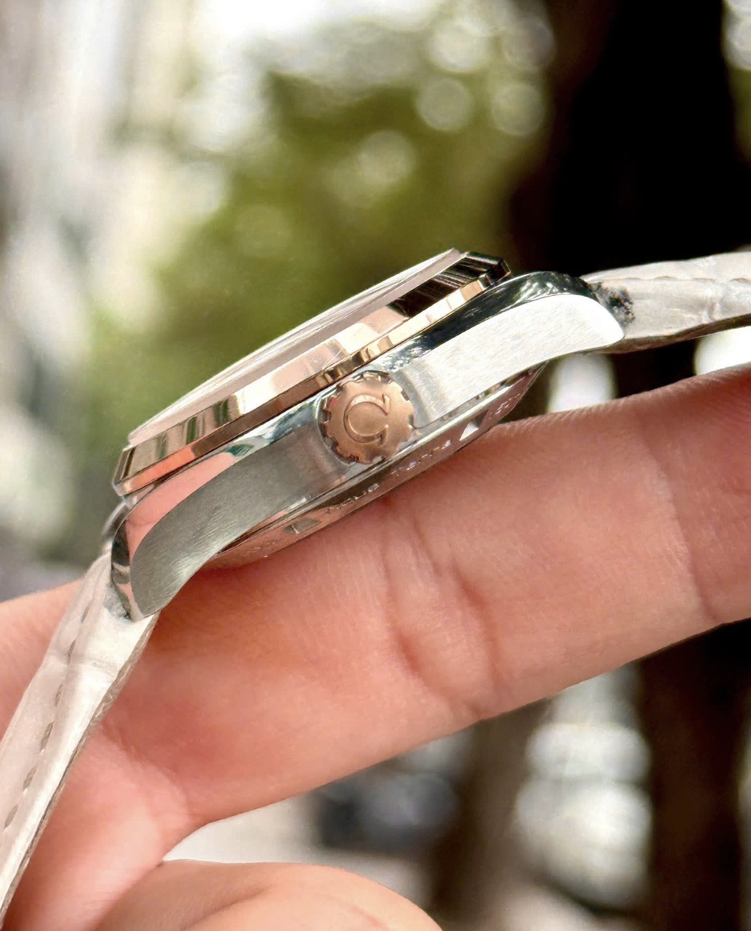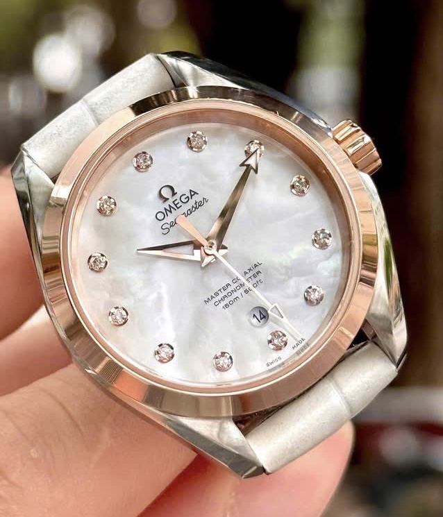 OMEGA Seamaster Aqua Terra 8520 Nữ_ MOP (khảm trai) trắng Diamonds, Demi Niềng Vàng hồng đúc 18k, Size 34mm, Like new fullbox, Giao lưu 110 triệu (Retail~ 272 triệu) ah