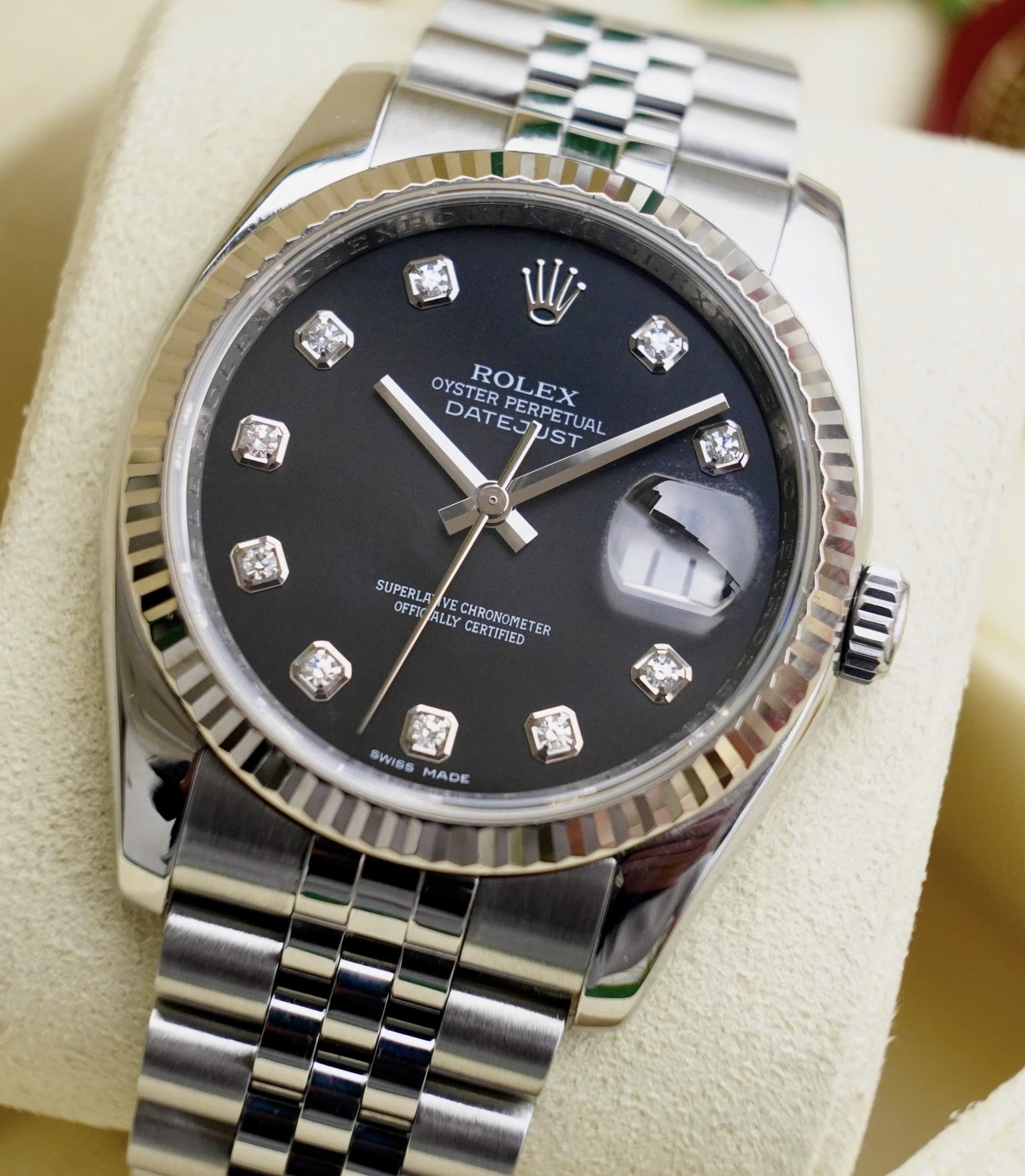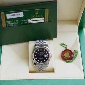 Rolex Datejust 116234 Black Diamonds, Niềng vàng trắng đúc 18k nguyên khối, Size 36mm, Like new fullbox date khá cao, Giao lưu 245 triệu ah