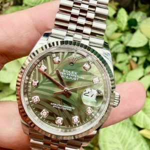 Đặt mua Rolex Datejust 126234 Lá Cọ Xanh Diamonds, Niềng vàng trắng đúc 18k, Size 36mm, Lướt đẹp Only date cao 2024