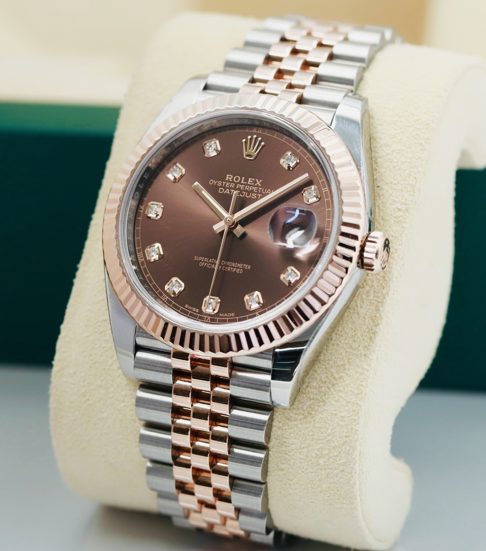 Đặt mua Rolex Datejust 126331 Chocolate Diamonds, Demi Vàng hồng đúc 18k, Size 41mm, Mark 1, Like new fullbox date 2018