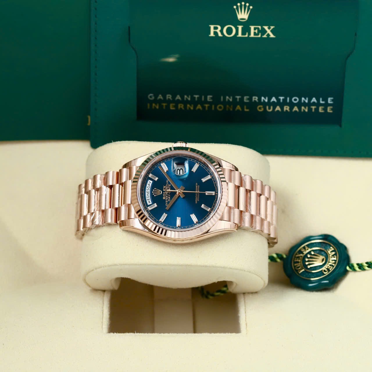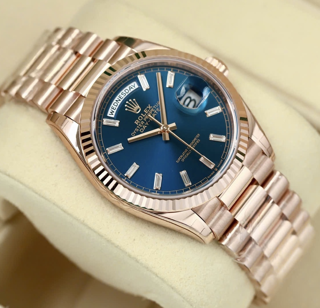 Rolex Day date 128235 Diamonds Baguette xanh Lục Nam, Vàng hồng đúc 18k nguyên khối, Size 36mm, Brand New fullset 2025, Giao lưu 1 tỷ 597 triệu ah
