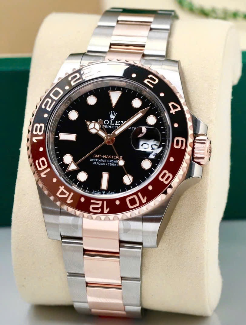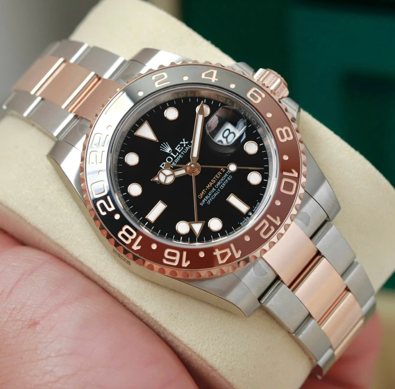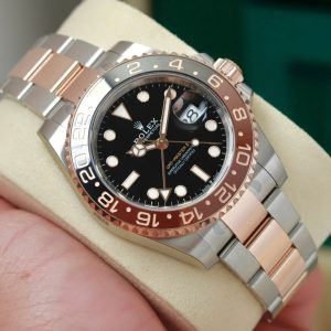 Đặt mua Rolex Rootbeer 126711 GMT Black, Demi Vàng hồng đúc 18k, Size 40mm, Like new fullbox date 2020
